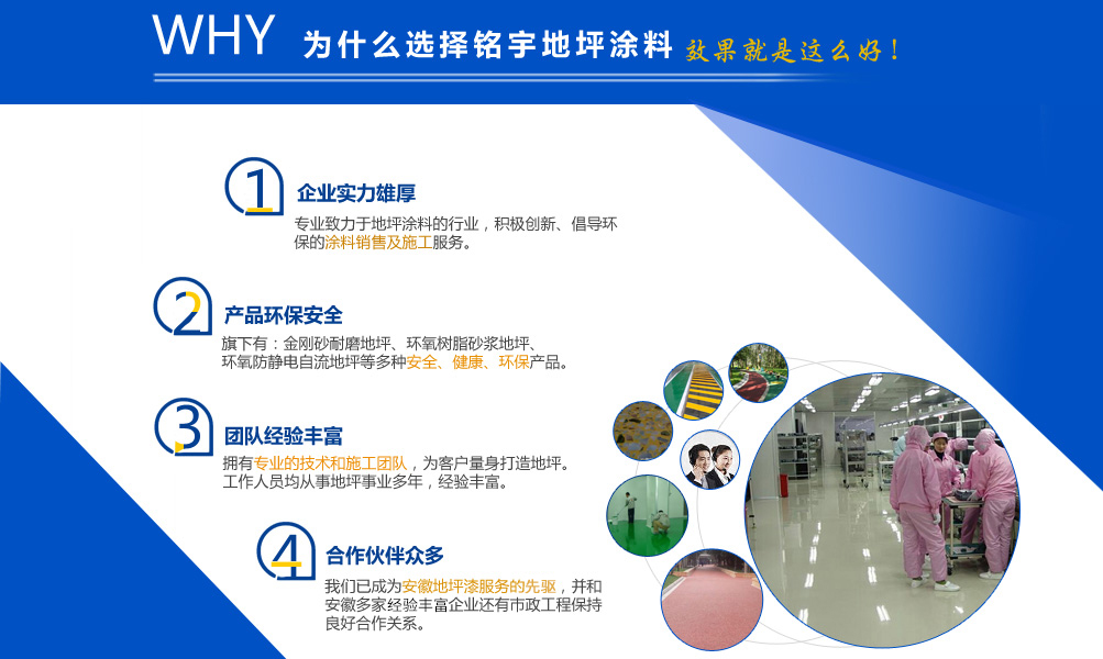 安徽銘宇建材科技有限公司是一家致力于地坪涂料的行業(yè),旗下有金剛砂耐磨地坪,環(huán)氧樹脂砂漿地坪,環(huán)氧防靜電自流地坪,停車場防滑地坪,混凝土密封固化劑和丙烯酸球場,無震動止滑車道、塑膠跑道、工廠地板漆等工程施工服務(wù)?! {借本身的技術(shù)能力和研發(fā)條件,加上多年對環(huán)氧地坪和耐磨硬化地坪等各類工業(yè)地坪的涂裝、施工的實(shí)踐經(jīng)驗(yàn)、技術(shù)己處于國內(nèi)專業(yè)水平,經(jīng)檢測機(jī)構(gòu)檢驗(yàn)符合相應(yīng)的技術(shù)標(biāo)準(zhǔn)。同時安徽銘宇建材科技有限公司還組建了經(jīng)驗(yàn)豐富的工程技術(shù)隊(duì)伍以及工程施工隊(duì)伍、簡歷了完善的售后施工服務(wù)體系,滿足用戶的需要。 安徽銘宇建材科技有限公司是一家積極創(chuàng)新、倡導(dǎo)環(huán)保的涂料銷售及施工服務(wù)的廠家,安徽銘宇建材科技有限...